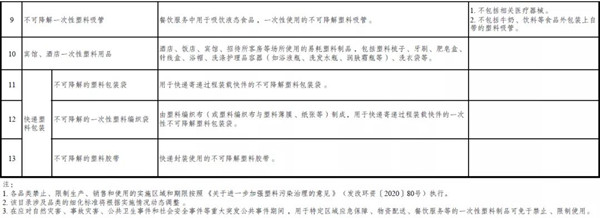 根據(jù)《征求意見稿》規(guī)定,禁止、限制使用的塑料制品包括不可降解塑料袋、不可降解一次性塑料餐具、賓館酒店一次性塑料用品、快遞塑料包裝等。其中,餐飲服務中禁用的不可降解一次性塑料包括餐盒 (含蓋)、碗(含蓋)、杯(含蓋)、盤、碟、刀、叉、勺等,但上述規(guī)定僅限于餐飲堂食服務,餐飲打包外賣服務除外。