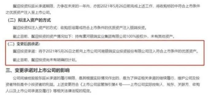 董事長(zhǎng)、董秘等多次被處分 記者了解到,在此之前,銀鴿投資時(shí)任董事長(zhǎng)、董秘等高管因增持股票未達(dá)承諾目標(biāo)、資產(chǎn)重組失敗等原因,被監(jiān)管部門(mén)多次處分。 2018年2月2日,銀鴿投資稱,因公司擬籌劃收購(gòu)明亞保險(xiǎn)經(jīng)紀(jì)66.67%股權(quán),公司股票于2月2日起停牌。然而,停牌近3個(gè)月之后,銀鴿投資又稱,收購(gòu)標(biāo)的公司控股股東購(gòu)佳杉資產(chǎn)51%的劣后合伙份額及普通合伙份額,因交易價(jià)格變化導(dǎo)致不再構(gòu)成重組。 2019年9月30日,上交所對(duì)銀鴿投資時(shí)任董事長(zhǎng)兼董事會(huì)秘書(shū)顧琦,時(shí)任董事會(huì)秘書(shū)羅金華、邢之恒通報(bào)批評(píng),并通報(bào)中國(guó)證監(jiān)會(huì),記入上市公司誠(chéng)信檔案。 上交所表示,交易方案及收購(gòu)標(biāo)的調(diào)整,是籌劃重大交易時(shí)應(yīng)審慎考慮、及時(shí)披露的事項(xiàng)。而銀鴿投資在披露重大資產(chǎn)重組進(jìn)展公告時(shí),未在相關(guān)進(jìn)展公告中就收購(gòu)標(biāo)的、交易價(jià)格的調(diào)整等可能導(dǎo)致重組終止的事項(xiàng)及相關(guān)風(fēng)險(xiǎn)予以充分提示。公司有關(guān)重大資產(chǎn)重組的信息披露不及時(shí),風(fēng)險(xiǎn)揭示不充分。 2018年6月12日,顧琦等高管發(fā)布公告稱,計(jì)劃自公告披露之日起6個(gè)月內(nèi)以自有資金增持公司股份,增持金額不低于2000萬(wàn)元、不高于4000萬(wàn)元。 等到增持計(jì)劃履行期屆滿時(shí),銀鴿投資披露公告稱,顧琦和時(shí)任董秘羅金華已增持部分股票,增持金額合計(jì)549.50萬(wàn)元,并擬將本次增持計(jì)劃期限延長(zhǎng)6個(gè)月。 2019年5月26日,銀鴿投資披露董事、高級(jí)管理人員終止增持計(jì)劃的公告稱,增持股份所需資金未能籌措到位,導(dǎo)致原增持計(jì)劃的實(shí)施遇到困難,上述增持主體決定終止增持計(jì)劃。 對(duì)此,今年2月5日,上交所對(duì)顧琦等責(zé)任人就其未履行增持承諾一事,進(jìn)行通報(bào)批評(píng)。 間接控股股東兩次延緩注入資產(chǎn)承諾 2016年11月9日,銀鴿投資原間接控股股東河南能源化工集團(tuán)與深圳市鰲迎投資管理有限公司(以下簡(jiǎn)稱鰲迎投資)簽署了股權(quán)轉(zhuǎn)讓協(xié)議。河南能源化工集團(tuán)同意將其持有的銀鴿集團(tuán)100%股權(quán)轉(zhuǎn)讓給鰲迎投資,并于2017年3月15日完成了股權(quán)轉(zhuǎn)讓工商變更登記手續(xù)。 股權(quán)轉(zhuǎn)讓完成后,鰲迎投資承接了河南能源化工集團(tuán)資產(chǎn)注入承諾,并明確“將于2019年5月26日之前向銀鴿投資注入符合上市條件的優(yōu)質(zhì)資產(chǎn)”。就在承諾期限即將到期時(shí),鰲迎投資召開(kāi)董事會(huì)議,將承諾期限延長(zhǎng)至2020年5月26日之前。 3月16日,銀鴿投資再次發(fā)布公告稱,鰲迎投資擬延長(zhǎng)承諾期限,力爭(zhēng)在未來(lái)的一年內(nèi),亦即2021年5月26日前完成上述工作,將收購(gòu)標(biāo)的中符合上市條件之優(yōu)質(zhì)資產(chǎn)注入至上市公司。 銀鴿投資表示,鰲迎投資自完全持有銀鴿集團(tuán)100%股權(quán)以來(lái)一直積極致力于履行注入資產(chǎn)承諾,為銀鴿投資尋找符合上市條件的主業(yè)和非主業(yè)之資產(chǎn),并多次對(duì)潛在標(biāo)的進(jìn)行了可行性研究和初步調(diào)研,然而受市場(chǎng)環(huán)境變化的影響,關(guān)于并購(gòu)標(biāo)的的進(jìn)一步盡調(diào)、交易架構(gòu)、資產(chǎn)剝離等有關(guān)方案始終未能與出讓方達(dá)成一致意向。 同時(shí),由于新冠肺炎疫情的暴發(fā),鰲迎投資正常經(jīng)營(yíng)活動(dòng)受到影響,相關(guān)并購(gòu)計(jì)劃的談判和磋商一再擱淺和延緩。這導(dǎo)致注入符合上市條件的優(yōu)質(zhì)資產(chǎn)存在極大不確定性,預(yù)計(jì)短期難以實(shí)現(xiàn)。 截至目前,銀鴿集團(tuán)持有銀鴿投資47.35%的股權(quán),由于借款糾紛等原因,被多地法院輪候凍結(jié)。