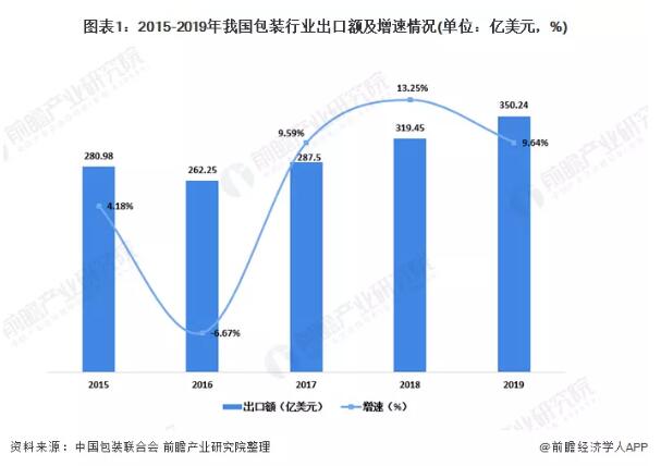 2020年1月,國家發改委、生態環境部聯合發布《關于進一步加強塑料污染治理的意見》。 4月10日,國家發改委正式發布了《禁止、限制生產、銷售和使用的塑料制品目錄(征求意見稿)》(以下簡稱“《征求意見稿》”),向社會公開征求意見。 隨后,海南省生態環境廳印發《關于開展禁止生產銷售使用一次性不可降解塑料制品試點工作的通知》,明確4月至11月,海南將分步驟、分階段組織重點行業和場所率先開展“禁塑”試點工作,為12月起正式全面“禁塑”的實施打好基礎。 盡管塑料包裝即將淡出歷史舞臺,但在包裝行業進出口份額的排行榜上,2019年,塑料包裝均居于首位。 如今,不僅我國“禁塑令”高懸,全球很多國家地區的“禁塑”舉措也在逐步落實,一切的一切,都在為紙包裝行業的發展蓄力! 2019包裝行業出口額增長勢頭強勁 近年來,隨著我國對外貿易規模的不斷擴大,包裝行業出口市場也表現活躍。根據中國包裝聯合會發布的數據顯示,2016-2019年,我國包裝行業出口不斷增加。2019年行業實現總出口額350.24億美元,同比增長9.64%,繼續保持著強勁的增長勢頭。