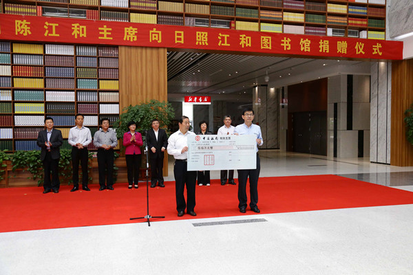 金鷹集團(tuán)主席陳江和先生向日照圖書館項(xiàng)目捐款3000萬元 這是日照市歷史上收到的最大一筆捐贈。 隨后的三年時間里,市委、市政府克服各種困難支持圖書館項(xiàng)目建設(shè)。 2013年,圖書館項(xiàng)目再次被列為全市年度城建重點(diǎn)工程。當(dāng)年5月1日,圖書館項(xiàng)目再次開工建設(shè)。 2015年12月26日,歷時6年的艱辛努力,日照市圖書館(日照江和圖書館)終于正式開館。圖書館位于濟(jì)南路與菏澤路交匯處,南面是日照實(shí)驗(yàn)高中,建筑面積約5.2萬平方米,館藏規(guī)模藏書量為120萬~150萬冊,是集典藏整理和傳統(tǒng)服務(wù)、數(shù)字化服務(wù)、遠(yuǎn)程服務(wù)于一體,數(shù)字化圖書館與傳統(tǒng)圖書館相結(jié)合的現(xiàn)代圖書場館。 日照終于有了一座全國一流的公立圖書館。