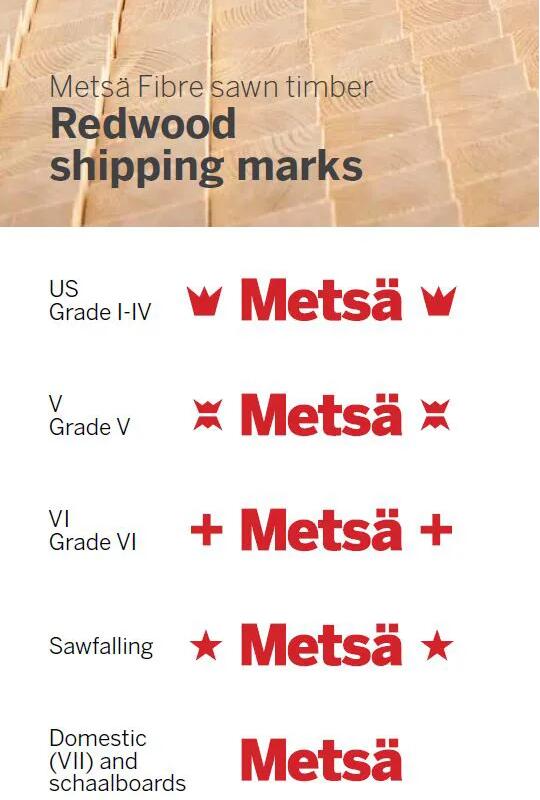 各處鋸木廠各自采用的裝運標志都已經替換為統一的品牌新形象。即基于芬林標志的新設計和標注有木材等級的裝運標志。云杉鋸材的標志底色是綠色,而松木鋸材的標志底色是紅色。 “以前,各處鋸木廠在加工鋸材時可能存在特定的差異,因此各處鋸木廠有必要使用各自的裝運標志,F在鋸材的質量已經保持一致,不管生產地點在何處,我們都能夠使用統一的裝運標志。” “品牌升級有利于品牌建設和提升客戶服務?蛻羧粝胱稍兣c鋸木廠產品相關的任何問題,可以聯系我們的統一銷售服務中心。” Pänkäläinen補充道。