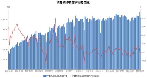 圖6.造紙行業(yè)產(chǎn)成品庫(kù)存高企 從造紙行業(yè)產(chǎn)成品庫(kù)存來(lái)看,自今年以來(lái)產(chǎn)成品庫(kù)存一直在增加,也從側(cè)面反映了新冠肺炎疫情沖擊導(dǎo)致國(guó)內(nèi)造紙行業(yè)需求受到影響往年的狀況。由于二季度是紙制品需求淡季,因此預(yù)計(jì)短期內(nèi)產(chǎn)成品庫(kù)存仍將繼續(xù)累積。 四、未來(lái)展望