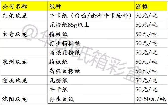 5月下旬至今,已有100多家紙廠跟漲50-200元/噸 6月初這波行情起于5月下旬。紙箱查查監測顯示:當時,玖龍三大基地聯手拉漲,理文、聯盛、山鷹等100余家紙廠跟調,漲幅50-200,浙江山鷹廢紙甚至3天連漲4次,市場普遍看漲。 東莞玖龍紙業:5月25日上調牛卡紙價格50元/噸,上調再生牛卡紙價格50元/噸。 太倉玖龍紙業:5月25日起上調再生牛卡紙價格50元/噸。 重慶玖龍紙業:5月25日起上調地龍再生、江龍再生箱板紙價格50元/噸,上調箱板紙價格50元/噸。 另一大佬理文方面于5月20日全線領漲后,5月29日廣東理文再次小幅上調包裝紙價格,這也是搶先一步為接下來6月的紙業行情奠定了上漲的基調。 在經歷了上半年長達幾個月的疫情停產、艱難復工、訂單萎縮之后,不少紙廠都蠢蠢欲動,陸續搶在5月底6月初展開了漲價“攻勢”,急切地想彌補此前的虧空。 部分紙廠漲價函 河南亨利紙業:由于近期原材料價格持續上漲,造成生產成本增加,從6月3日起我司紙價上調50元/噸。 瀏陽市銀河紙業:鑒于目前國產廢紙快速上調及其它政策等因素的影響,導致本公司的生產成本大幅上漲,從6月1日起本廠瓦紙價格上調100元/噸。 東莞市金田紙業:由于受原材料價格普遍上漲的影響,公司決定自6月1日起對金娃牌環保牛卡紙價格上調50元/噸。本次調價含之前已收的預付款及未交付的訂單。 東莞建暉紙業:受原材料及其它綜合成本上升影響,5月28日起我司生產的各種等級涂布灰底白板紙價格上調100元/噸。 江門市明星紙業:由于廢紙等原材料價格上漲,公司決定從5月29日起所有系列紗管紙上調50元/噸。 玉田縣順發實業:因受近日原材料價格持續增漲,貨源緊張的因素且環保成本增加,公司決定自5月22日起所有克重及品項的成品紙每噸上調50元。 此外,為了給廣大客戶提供更優質的牛卡紙,江門市明星紙業通知6月3日-22日對二車間牛卡紙機臺進行技術改造,共計停機檢修20天,并提醒各客戶提前做好用紙安排! 據廣東部分紙板廠反饋,5月下旬玖龍的領漲并未起到明顯的市場帶動作用。受疫情及下游需求影響,行業信心依然不足,紙板廠依舊觀望為主、庫存不高,價格處于穩中小幅下行狀態。故紙廠方面也寄希望于通過6月初再次漲價來刺激一些需求,調動起整個產業鏈,讓上下游企業都能緩一口氣,甚至是續一段命。于是就有了這一次的聯動漲價! 據業內專家分析,本次瓦楞紙、箱板紙漲價的特征是時間一致、幅度一致,三大龍頭全部參與!如果龍頭本輪漲價成功,行業就會重復2019年小幅慢跑的漲價模式——30、50的慢慢漲,下游純做紙板的工廠將會很難受!