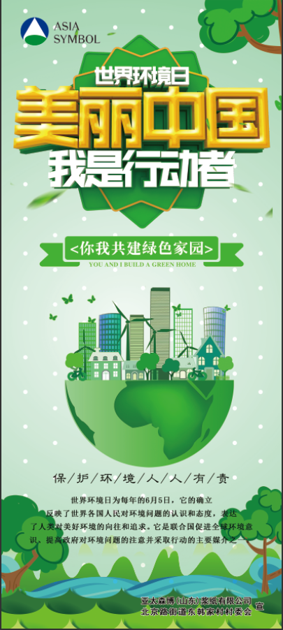 6月5日,在世界環境日和亞太森博安全環保月之際,亞太森博(山東)漿紙有限公司與日照經濟技術開發區北京路街道東韓家村聯合,在連云港路市場開展“美麗中國,我是行動者”環保宣傳活動。