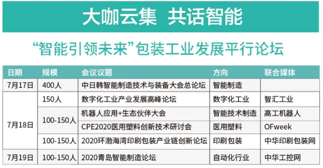 五天展期里將陸續舉辦包括智能制造、智能工廠、印刷包裝等多場會議論壇,參觀展會的同時,也為行業未來的發展指明方向。 品牌薈萃 企業發聲 青島包裝展自招商以來,已有食品加工機械、食品機械配套設備、檢測設備、標識標簽設備、印刷設備等眾多國內外包裝產業一線品牌供應商報名參會,帶來更多新產品新技術新亮點,引起包裝界企業廣泛關注。