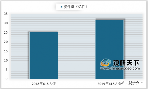 數據來源:國家郵政局 2019年618大促期間快遞攬件量及同比增速