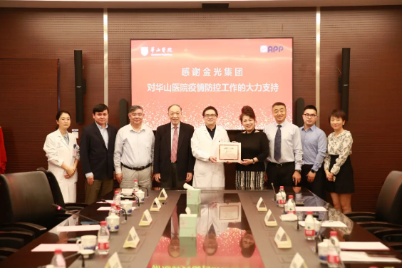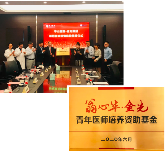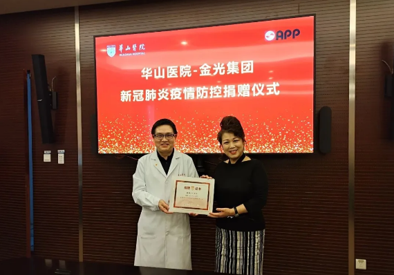 華山醫(yī)院向金光集團(tuán)頒發(fā)捐贈贈書,對金光集團(tuán)捐贈1000萬元支持疫情防控表示感謝 疫情發(fā)生后,作為愛國華僑,金光集團(tuán)董事長兼總裁黃志源先生從第一時間就對中國疫情狀況表現(xiàn)出了深切的關(guān)注,并即刻做出捐贈的決定,通過中國華僑公益基金會捐款1億元人民幣和價值35萬元的清風(fēng)衛(wèi)生濕巾,用于抗擊新冠肺炎疫情。其中1000萬元定向資助華山醫(yī)院,開展新冠肺炎疫情防控人才關(guān)愛培養(yǎng)與公共衛(wèi)生事件能級提升改造項(xiàng)目。該項(xiàng)目主要包括抗疫一線醫(yī)務(wù)工作者慰問金發(fā)放、翁心華青年醫(yī)師培養(yǎng)資助基金設(shè)立、醫(yī)院傳染病樓項(xiàng)目改造三部分內(nèi)容。