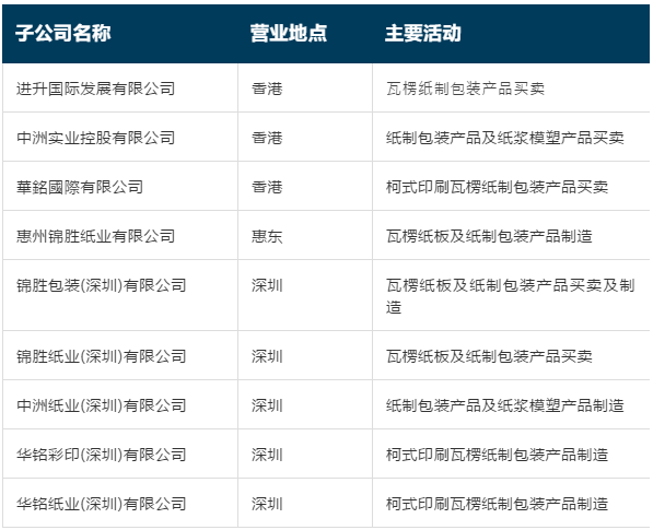繼泉州工廠被玖龍收購之后,錦勝集團以一筆資產收購宣告了其繼續角逐中國大陸包裝市場的野心。 2020年6月24日,錦勝集團(控股)(00794)發布公告稱,全資附屬公司錦勝包裝(深圳)有限公司作為買方與賣方東莞市瑞興紙制品有限公司訂立買賣協議,以按總代價人民幣2188萬元購買該等資產。 公告稱,將收購的資產合共2276個項目,包括用于生產瓦楞紙板及紙制包裝產品的生產機器、辦公室設備、電腦設備及消耗品等。 根據網上公開資料顯示,東莞市瑞興紙制品有限公司成立于2009年06月22日,注冊地位于東莞市橋頭鎮大洲村大東路東一巷23號B區,法定代表人為葉遠新。經營范圍包括產銷:紙制品;包裝裝潢印刷品、其他印刷品印刷。東莞市瑞興紙制品有限公司對外投資1家公司。 而在今年2月,東莞市瑞興紙制品有限公司進行了改擴建,改擴建后項目占地面積78000㎡,建筑面積46717㎡,主要從事瓦楞紙、紙盒、紙箱的加工生產,年加工生產瓦楞紙20200噸、紙盒、紙箱10800噸,原輔材料牛皮紙、芯紙、生粉、水性油墨、白乳膠均為外購新料,改擴建后主要設備為五層瓦楞紙生產線2條(配套預熱段2段、雙面機2臺、分紙機4臺、烘干段2段、冷卻設備2臺)、印刷機7臺、粘箱機1臺等(詳見該建設項目環境影響報告表)同時取消450KW發動機1臺。 錦勝集團是目前國內紙包裝行業中碩果僅存的老牌港資企業,于2009年上市,擁有約30年的瓦楞紙板及紙制包裝產品的生產制造經驗,主要附屬公司包括惠州錦勝紙業有限公司、錦勝包裝(深圳)有限公司、錦勝紙業(深圳)有限公司、中洲紙業(深圳)有限公司、華銘彩印(深圳)有限公司、華銘紙業(深圳)有限公司等。