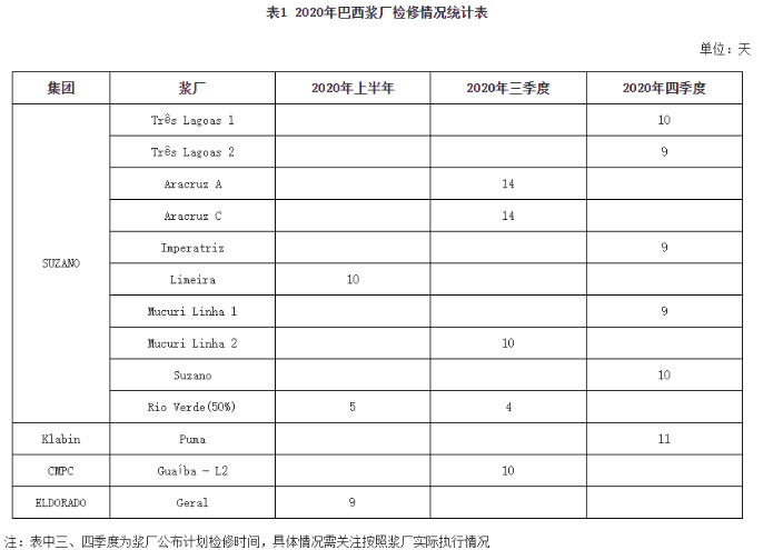 后期預測: 供應:巴西漿廠下半年檢修較為集中,如表1所示,表中是漿廠年度計劃檢修時間統計,上半年主要漿廠累計檢修天數為24天,而下半年累計達到110天,預計總供應量呈現下降。巴西疫情仍未出現拐點,截至7月14日,累計確診人數達到188.80萬人次,單日新增2萬人次以上,疫情對供應端影響仍存不確定性。成本方面,巴西雷亞爾匯率低位震蕩,漿廠成本空間充足,成本面有利于提振漿廠開工積極性。
