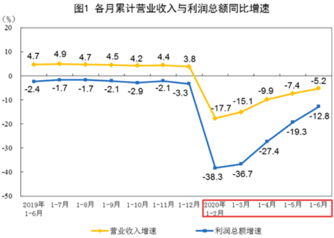 7月27日,國(guó)家統(tǒng)計(jì)局發(fā)布了2020年1-6月份全國(guó)規(guī)模以上工業(yè)企業(yè)利潤(rùn)情況。數(shù)據(jù)顯示,全國(guó)規(guī)模以上工業(yè)企業(yè)實(shí)現(xiàn)營(yíng)業(yè)收入46.31萬億元,同比下降5.2%;實(shí)現(xiàn)利潤(rùn)總額25114.9億元,同比下降12.8%。
