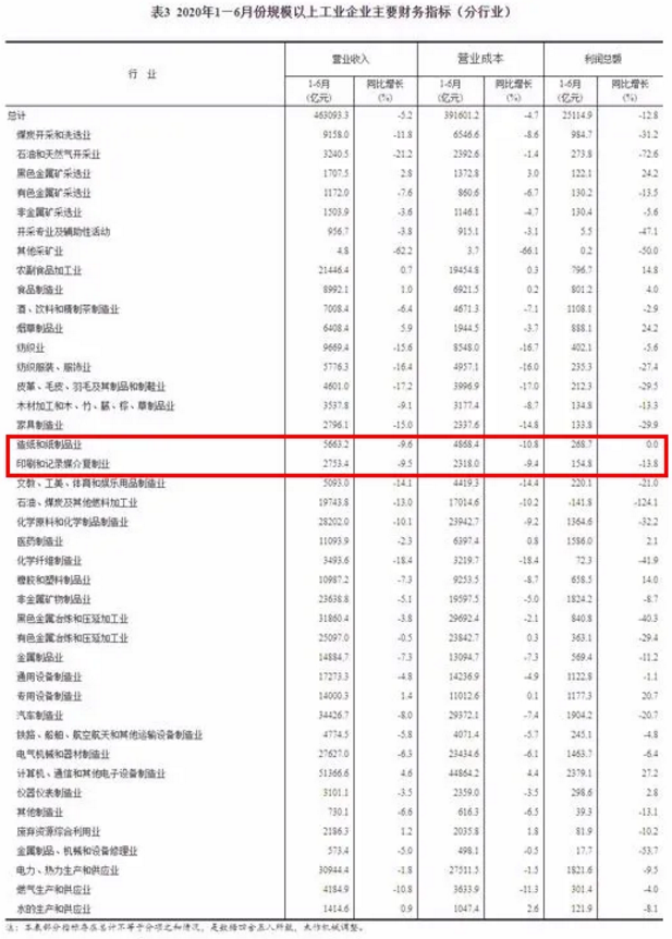 不過,隨著疫情的基本控制,造紙和紙制品業(yè)、印刷和記錄媒介復(fù)制業(yè)運(yùn)行情況也逐步出現(xiàn)好轉(zhuǎn),最有利的證明便是,兩大行業(yè)的在今年1-6月份的營(yíng)收、利潤(rùn)降幅相比今年1-5月份,均有收窄。這也意味著,今年下半年,各行業(yè)的經(jīng)濟(jì)數(shù)據(jù)有望繼續(xù)回升。