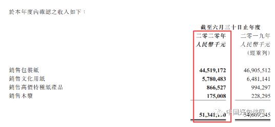 2020年實現銷量1530萬噸 據年報顯示,截至2020年6月30日止年度,玖龍紙業銷量達1530萬噸,較2019財年的1410萬噸增加8.5%,主要是因為國內業務銷量增加了120萬噸。但由于原紙售價平均下滑了13.4%,整體銷售收入較2019財年的546.09億元減少6%。 在如此之高的收入之中,由卡紙、高強瓦楞芯紙及涂布灰底白板紙組成的包裝紙產品帶來的收入為445.19億元,占總銷售收入約86.7%。而文化用紙、高價特種紙、漿產品的銷售收入分別為57.80億元、8.66億元、1.75億元,合計約占總銷售收入的13.3%。