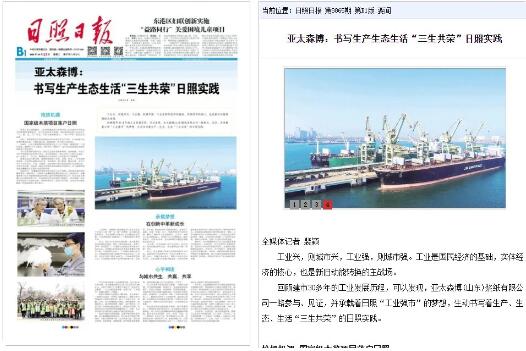 亞太森博木片專用碼頭,工人正在進行木片卸船作業 森博引進制漿造紙行業一流的工藝技術裝備和管理、控制措施,代表了當時中國漿紙企業的一流水平,項目投資很大,極大充實了日照工業家底。在一定意義上,可以說,森博漿紙為日照現代工業發展開啟了新篇章。 隨著企業的不斷發展,森博漿紙遇到了環保、資源、資金、人才等困難和瓶頸。引進國外戰略合作伙伴,加快重組,做大做強,整治污染,成為了多方人士的共識。于是,市政府、企業積極與國際制漿造紙巨頭對接洽談,尋求合資發展。而此時,擁有全球領先制漿造紙及環保技術、實力雄厚的新加坡金鷹集團正在國內尋找投資伙伴。 2003年7月,金鷹集團同意我市提出的擴大生產規模、高標準治理環保問題等要求。2004年5月,市政府與金鷹集團簽署投資協議書;2005年8月,金鷹集團旗下亞太資源集團通過股權轉讓溢價收購森博漿紙公司,更名為亞太森博(山東)漿紙有限公司,并迅速進行技術改造和產能提升。亞太森博,對改變我國造紙產業原料結構、提高環保水平、推動產業升級、改變木漿大量依賴進口的局面起到了重大意義。 承載夢想 在創新中革新成長 工業強市,承載著日照這座城市以及生長在這片土地上人民“強”與“富”的夢想。在日照巨輪的航程中,亞太森博作為推動工業發展的強勁引擎,于波濤洶涌中奮楫前行,于激流澎湃中奔向未來。 如今,經過10多年的快速發展,亞太森博已是世界領先的漿紙、漿纖一體化環保企業,獲得了多項“單項冠軍”:中國最大的商品化學木漿生產供應企業、中國最大的單條化學木漿及萊賽爾纖維生產線、中國造紙行業單一工廠環保投資最大的企業、中國造紙行業第一家的城市中水回用企業……目前,企業總投資已超過200億元,產品品種更趨多元化,產業跨度從漿紙產業到環保纖維產業,總投資、年產值、稅收都實現了數倍的增長,還帶動了造紙、印刷、包裝、化工、物流等相關產業的發展,解決了2800多人的直接就業,這其中,80%以上是日照本地人,還帶動上萬人間接就業。據初步統計,合資15年來,亞太森博累計繳納各類稅收近140億元。