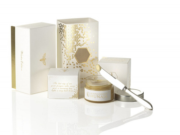 品牌商:Korpikuusikko Honey 產(chǎn)品包裝和禮盒加工商:Prem & cadPack 紙板:MetsäBoard Natural FBB 325g/㎡(產(chǎn)品包裝)和270g/㎡(禮盒) 白金獎(jiǎng) Party Délice