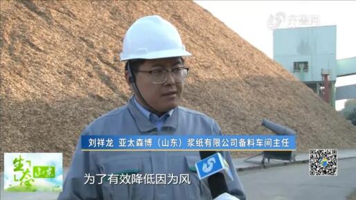 劉祥龍 亞太森博(山東)漿紙有限公司備料車間主任:我現在站的這個位置呢,是我們公司的木片堆場,為了有效降低因風造成的木屑飛揚,我們投資了2700萬,建成了周長2350米的抑塵墻,同時增加了霧炮機和抑塵車,有效地增加了我們區域的一個空氣濕潤度,降低了粉塵和木屑飛揚。