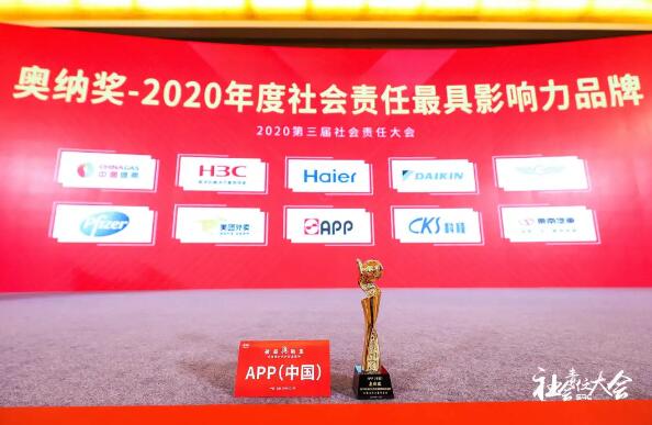 近日,第三屆社會責(zé)任大會在北京圓滿落幕。APP(中國)榮膺“奧納獎-2020年度社會責(zé)任最具影響力品牌”。