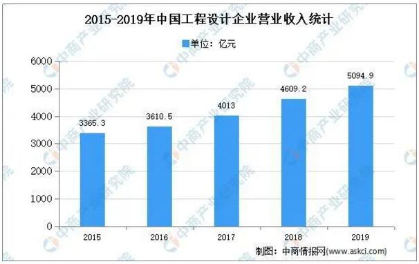數據來源:中國石油和化學工業聯合會、中商產業研究院整理 建材領域 我國是建筑建設大國,建材消耗量處在全球前列。在建材領域中,公司產品主要用于石膏粉、膩子粉、瓷磚粘結劑、填縫劑、防水涂料等各類特種砂漿產品的自動包裝。數據顯示,2019年中國工程設計收入5094.9億元,與上年相比增加了10.5%。