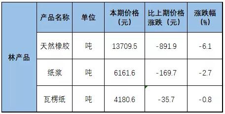 其中林產(chǎn)品領(lǐng)域,3月下旬與3月中旬相比,紙漿價(jià)格下跌169.7元,跌幅2.7%;瓦楞紙價(jià)格下跌35.7元,跌幅0.8%。
