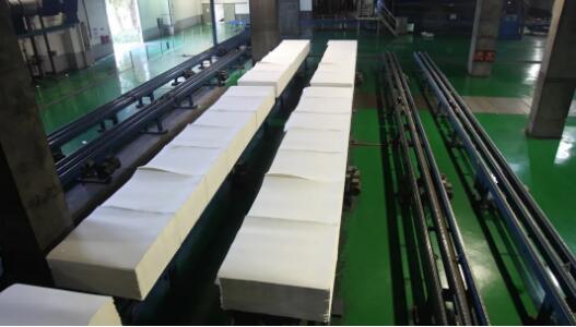 成品 成型的漿板由切紙機切分成一定重量大小的規(guī)格,然后再輸送到每一條包裝線。 為了運輸方便,傳輸帶上都是成品漿板,它們都是經過白度和污點評判等級而篩選出的。 設備基本上全自動運行,一天的產量可有3000噸。除了機器檢修期間除外,其他時間都在不間斷的運行中。