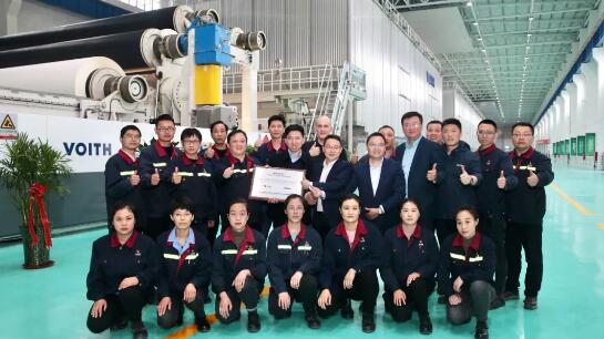 福伊特和太陽管理層為吳文春帶領的太陽PM39團隊授予最快項目執行紀錄證書 此次太陽之行,雙方還就未來進一步深化合作展開了深入且卓有成效的探討。太陽紙業與福伊特共同合作了12臺紙機,尤其是近幾年來,太陽紙業連續采購了10臺福伊特XcelLine智能紙機。作為彼此的重要合作伙伴,福伊特與太陽紙業將繼續深化互利合作關系,共同把握行業機遇,為中國造紙行業的長期發展共同貢獻力量。