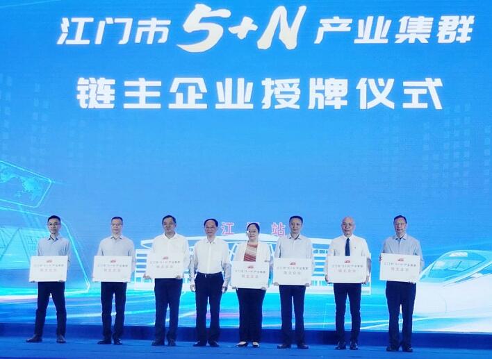 江門市市長吳曉暉在講話中指出,江門市委、市政府堅定不移走工業(yè)立市、制造強市之路,把“5+N”產(chǎn)業(yè)集群作為重要抓手,聚焦政策最惠、服務最優(yōu)、政企聯(lián)動,切實加強企業(yè)梯隊培育、支持傳統(tǒng)產(chǎn)業(yè)“上網(wǎng)觸電”、提升金融服務產(chǎn)業(yè)能力、優(yōu)化人才發(fā)展環(huán)境等,力促服務提質(zhì)、提速、升溫,著力強鏈補鏈穩(wěn)鏈控鏈,為產(chǎn)業(yè)集群發(fā)展激活力、添動力、聚合力。“這充分體現(xiàn)了我們發(fā)展產(chǎn)業(yè)的決心、服務企業(yè)的誠心和全市上下建設先進制造業(yè)強市的齊心”。吳曉暉強調(diào),要推動“鏈長”和“鏈主”企業(yè)間協(xié)同聯(lián)動,各產(chǎn)業(yè)鏈“鏈長”是首席服務官,要發(fā)揮好作為產(chǎn)業(yè)鏈招商隊隊長的作用,親力親為抓好所負責產(chǎn)業(yè)鏈的招商引資;各“鏈主”企業(yè)要發(fā)揮好行業(yè)龍頭的作用,推動配套企業(yè)落戶江門,引領、帶動相關產(chǎn)業(yè)鏈協(xié)同企業(yè)加快發(fā)展,提升產(chǎn)業(yè)集群的競爭力。 廣東省工信廳黨組成員葉元齡在講話中表示,江門在省剛剛實施“鏈長制”就迅速制定出臺了操作性強的方案,并聚集各方資源多維度支持產(chǎn)業(yè)發(fā)展,體現(xiàn)了江門市委、市政府高度重視產(chǎn)業(yè)集群培育工作,以及大力推動制造業(yè)高質(zhì)量發(fā)展的擔當、決心和作為,尤其是系列政策創(chuàng)新力度大,在全省具有示范意義。