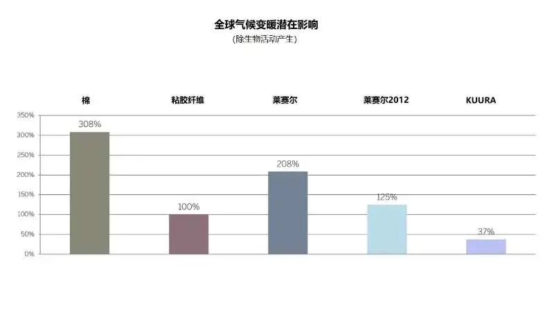圖1:CARTIF全球氣候變暖潛在影響 CARTIF給予Kuura良好的評估結果。就環境績效而言,與其他商用人造纖維素纖維(纖維膠和萊賽爾纖維)和棉花相比,Kuura對氣候變化的影響最小,證明其可作為紡織纖維市場的可持續方案(見圖1)。更具體地說,與使用現有商業紡織纖維相比,Kuura紡織纖維運用芬蘭當地可持續管理的木材原料,現有工廠提供的完全非化石能源,再輔以創新生產工藝,具有明顯減緩氣候變化的潛力。