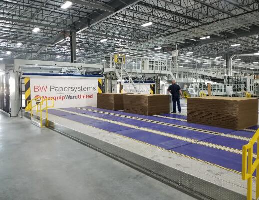 此外,該工廠安裝了百威勒紙業設備集團VortX品牌制膠機,每18分鐘可生產約1250升膠水。 老工廠五層線升級七層線 新工廠有效提升產能超2倍 位于福勒的新工廠是為滿足Maxco老工廠不斷擴大的生產需求而建。Maxco老工廠位于加州帕里爾,曾于2002年安裝了一條馬貴五層紙板生產線。 當年,Marquip、UnitedContainer與WardMachinery三家公司合并升級為新的MarquipWardUnited品牌,如今馬貴品牌已成為百威勒紙業設備集團旗下眾多品牌中的一員。