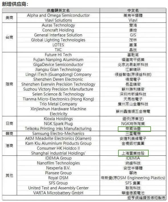 近日,蘋果公布了2020年Top200供應(yīng)商,對(duì)比于2019年的名單,可以說中國(guó)大陸廠商又是大贏家,因?yàn)榇箨憦S商增加了12家,減少了4家,相當(dāng)于凈增8家,是所有國(guó)家和地區(qū)中最多的。中國(guó)臺(tái)灣廠商增加了6家,中國(guó)香港廠商也增加了4家,不過臺(tái)灣、香港也同樣退出了6家和4家,總數(shù)不增不減。 在包材供應(yīng)鏈方面,這一次竟然涉及到四家企業(yè),變化不可謂不劇烈。