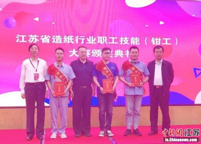 頒獎儀式。徐媚攝 會議期間,2020年度江蘇省造紙行業職工技能(鉗工)大賽表彰儀式同步舉行。(完)