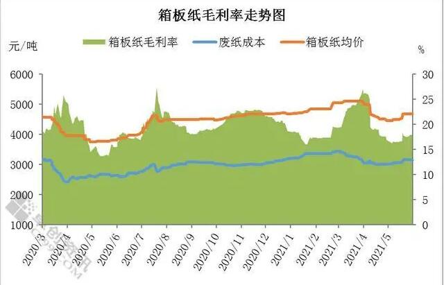 進入今年Q2,工業包裝紙重回低谷,原料成本攀升讓紙企頗感壓力,但需求疲軟意味著成本難以向下傳導,二季度業績或不容樂觀。 與此同時,行業內部分化加劇,依賴進口的長纖維漿供應緊張,造成其對應產品緊俏,有望成為影響各家紙企利潤的重要因素。 A股公司中,僅有太陽紙業具備自產長纖維漿的能力,但考慮到工業包裝紙在其整體營收中僅占20%左右,對業績影響相對有限。剩余各大紙廠目前主要依靠進口,其中,森林包裝、景興紙業等廠商的海外制漿產線正在推進中,有望逐步實現自給,增厚業績。 工業包裝紙毛利收窄 工業包裝紙主要分為箱板紙和瓦楞紙兩類。卓創資訊數據顯示,進入5月份,箱板紙價格環比變動不大,而原料廢紙成本環比上漲2.42%,故5月份箱板紙毛利環比下滑2.89個百分點,紙廠盈利壓力較大。與此同時,瓦楞紙價格漲幅也小于成本面漲幅,毛利呈現下滑態勢。