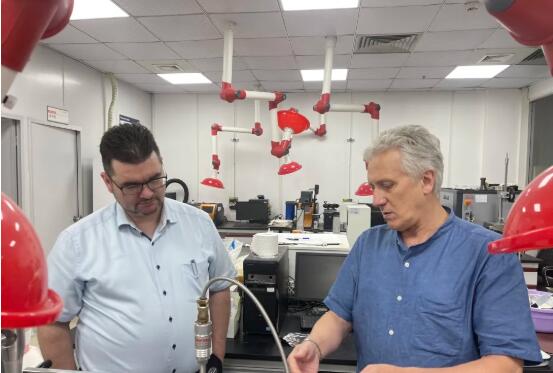 圖左邊為裕同科技董事長王華君先生 圖右邊為莫迪維克中國、香港特別行政區及蒙古國總經理李延思先生 會后,李延思先生參觀了裕同環保研究院實驗室,對裕同環保新材料新科技等的研發情況表達了濃厚興趣和快速展開合作的強烈意愿。