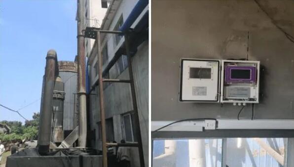 ▲錦州金日紙業有限責任公司堿洗塔停運(左),鍋爐廢氣排放口自動監測設備數采儀已斷電(右)