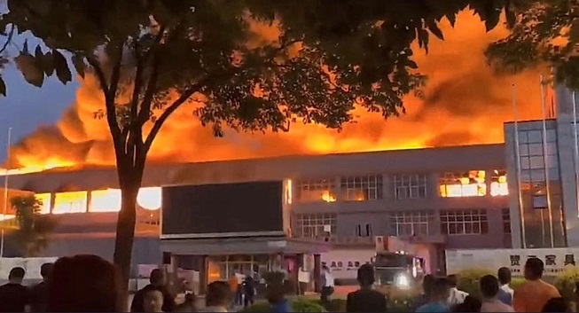 8月17日晚18:38,浙江嘉興平湖市開發(fā)區(qū)一家工廠突發(fā)大火,火勢(shì)兇猛,當(dāng)?shù)爻鰟?dòng)165名消防員趕往撲救,晚上10點(diǎn)大火基本撲滅,所幸無人員傷亡。
