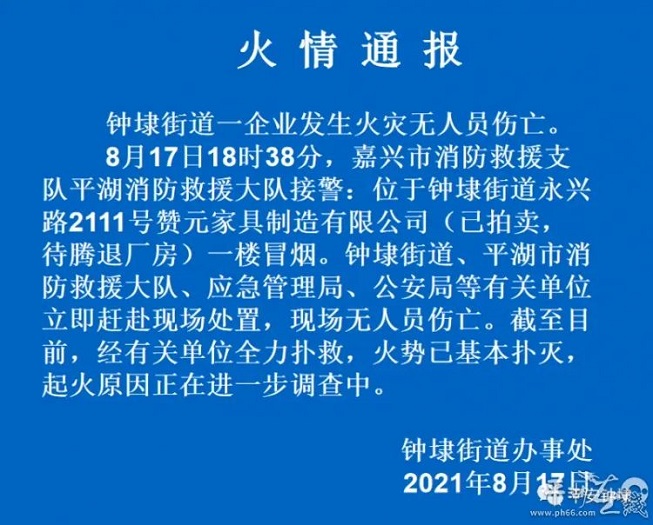 據(jù)浙江廣電集團(tuán)中國(guó)藍(lán)報(bào)道,該家具廠共3層,1層是木材和海綿,2層和3層為成品沙發(fā),32輛消防車和165名消防員已趕赴現(xiàn)場(chǎng)撲救,現(xiàn)場(chǎng)無人員被困,目前火災(zāi)正在撲救中。 陳先生介紹,事發(fā)地點(diǎn)是一家具廠,此前叫恒寶隆,大約在今年改名贊元家具。百度地圖顯示,恒寶隆家具位于浙江省嘉興市平湖市經(jīng)濟(jì)開發(fā)區(qū)永興路2111號(hào)。 從企查查公開的信息獲悉,浙江恒寶隆家具制造有限公司成立于2014年12月,是一家從事塑料家具加工的工廠,后因拖欠工資、供貨商貨款和銀行貸款被宣布破產(chǎn)。 去年7月,平湖市贊元家具制造有限公司正式接盤,但有消息指目前該廠房仍在騰退中。損失的資產(chǎn)屬于哪一方尚不清楚,倘若工廠在交接過程未及時(shí)辦理保險(xiǎn),那損失就大了!