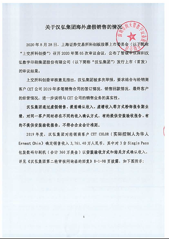 潤天智公布的部分舉報信。 2020年6月,潤天智對深圳市漢拓數碼有限公司(以下簡稱為“漢拓數碼”)及其股東漢弘集團發起訴訟,要求其停止侵犯原告涉案技術秘密并賠償經濟損失1.09億元。 在此之前,潤天智已經對漢弘集團核心技術人員趙義發、李曉剛展開了長達十年的舉報及訴訟。這兩位技術人員在2009年、2010年相繼從潤天智離職并加入了漢弘集團旗下子公司漢拓數碼。2011年,潤天智向深圳市公安局舉報上述人員侵犯商業機密。 這起案件的進展可謂曲折,中間經過多次知識產權和技術相關的鑒定所對案件的鑒定。但潤天智并沒有得到“正義伸張”,2018年,深圳市龍崗區檢察院兩次退回偵查機關補充偵查,并在2019年作出裁定,以證據不足駁回了潤天智的起訴。 眼看著涉嫌侵犯自家商業機密的公司即將上市,潤天智打算最后一搏,從起訴個人變為直接狀告公司,并發起多次舉報。 截至發稿日,不論是潤天智起訴漢弘集團侵犯商業機密的案件,還是漢弘集團反訴潤天智商業詆毀,兩起案件都未開庭審理。 而對于此前狀告漢弘集團侵犯公司商業機密一案,工作人員回復稱,“深圳市中級人民法院于2020年11月對此案件作出裁決,發回深圳龍崗區檢察院重審,目前案件還在審理中,并未公布最終裁決。” 去年,在案件引發了大批媒體及公眾的關注后,上交所科創板上市委在對漢拓集團的兩輪問詢中也重點提到了關于商業機密糾紛的問題。 與潤天智大張旗鼓舉報、訴訟不同的是,漢弘集團當時對于此案件的回復相對克制,只在問詢回復中作出表態稱,潤天智主張的商業秘密不屬于噴墨印刷設備的核心技術,趙、李二人和漢拓不存在侵犯潤天智商業秘密的行為。
