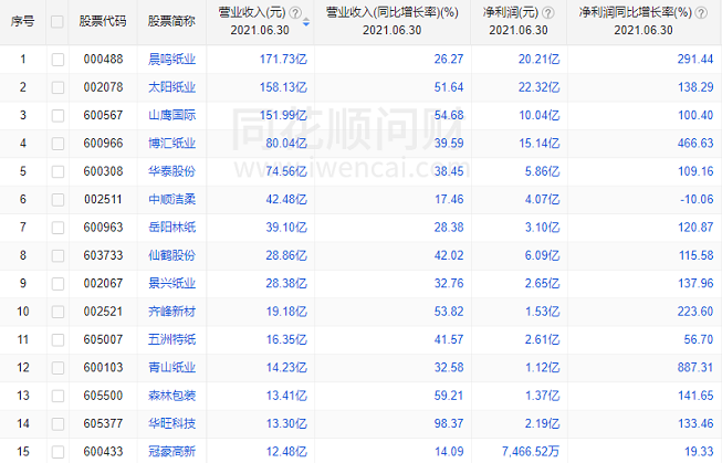 在盈利增速方面,21家凈利潤實現(xiàn)正增長,其中凈利潤同比增長超過100%的有14家,青山紙業(yè)增幅最大,同比上升887.31%。  一些結(jié)論 造紙行業(yè)景氣度回升利好企業(yè) 造紙關(guān)乎國計民生,與宏觀經(jīng)濟環(huán)境關(guān)系密切。造紙企業(yè)們交出了滿意的答卷,很大程度上得益于行業(yè)景氣度整體復(fù)蘇的大背景。2021年上半年,隨著國內(nèi)疫情得到控制,宏觀經(jīng)濟環(huán)境全面復(fù)蘇,紙制品作為基本的生產(chǎn)和生活資料的需求也被逐步釋放。據(jù)工業(yè)和信息化部公布的數(shù)據(jù),2021年1-6月,全國造紙及紙制品營業(yè)收入7142億元,同比增長24.7%;利潤總額484.3億元,同比增長77.2%。 做大做強產(chǎn)業(yè)鏈?zhǔn)前l(fā)展趨勢 疫情導(dǎo)致上游原料價格增長,行業(yè)總體成本提升,這對造紙行業(yè)來說都是一個重大考驗。但對于擁有完整產(chǎn)業(yè)鏈的企業(yè)而言,其成本優(yōu)勢更容易凸顯。 晨鳴紙業(yè)早在二十年前就布局了產(chǎn)業(yè)鏈一體化戰(zhàn)略,基于公司430萬噸自制漿的原料成本優(yōu)勢以及水運、陸運的配套運輸優(yōu)勢,有效管控成本以確保自身競爭力,例如晨鳴紙業(yè)自制木漿成本較一般市場價格要低數(shù)百元,總體運輸成本也優(yōu)于同業(yè);圍繞造紙產(chǎn)業(yè)鏈,太陽紙業(yè)也進行了多元化布局,目前已經(jīng)構(gòu)建起了山東、廣西和老撾三大基地,隨著今年下半年廣西基地紙、漿項目陸續(xù)投產(chǎn),太陽紙業(yè)漿、紙產(chǎn)能將超過1000萬噸;而博匯被APP(中國)收購之后,能夠享受到集團林漿紙一體化布局帶來的成本優(yōu)勢,有效提升紙漿成本優(yōu)勢和盈利能力。 革新技術(shù)和產(chǎn)品方贏先機 從各家紙企的布局看,對于產(chǎn)品和技術(shù)的持續(xù)革新也為增強公司競爭力貢獻一筆。博匯紙業(yè)在上半年緊抓“以白代灰”、“以紙代塑”的政策變化帶來的先機,加大新產(chǎn)品研發(fā)和升級,成功開發(fā)出高檔食品卡、紙杯原紙、涂布紙杯紙等新產(chǎn)品,同時還開發(fā)出防偽煙包、特種銅版卡、高級名片紙、白面牛卡、吸塑紙等新產(chǎn)品滿足特殊客戶差異化需求;晨鳴集團則加快新舊動能轉(zhuǎn)換步伐,改造升級高端產(chǎn)能,高檔產(chǎn)品比重占到95%以上;太陽紙業(yè)為實現(xiàn)產(chǎn)品差異化競爭,正適時調(diào)整經(jīng)營策略,目前在研發(fā)方面已構(gòu)建了較為完善的科技創(chuàng)新體系,并擁有一支專業(yè)、高效、技術(shù)過硬的科技研發(fā)隊伍,公司每年的研發(fā)投入占比處于同行前列。 這一輪業(yè)績公布,有人喜,卻也有人憂。憂的是,利潤都是別人的。 如上文提到的,無論是深耕產(chǎn)業(yè)鏈,還是革新產(chǎn)品和技術(shù),都需要企業(yè)有充足的資金流能持續(xù)投入,也就是說,非頭部企業(yè)而難為。可以想見,在環(huán)保趨嚴(yán)、成本上漲的態(tài)勢下,缺少話語權(quán)的中小企業(yè)所面臨的生存壓力將越來越大。而中下游的包裝廠印刷廠尤其深受其困,根據(jù)紙箱說反映,“中游板箱企業(yè)盡管營業(yè)額增幅較大、但是利潤率增長不高”。“上游亂漲價,下游苦哈哈”,更是許多人心境的寫照。 在金九銀十的傳統(tǒng)需求旺季到來之際,目前卻趨勢不明,前途難料,整個市場觀望氛圍濃厚。