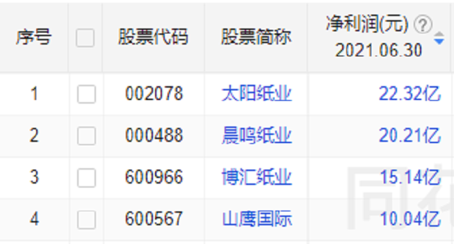 太陽紙業(yè)成盈利之王,青山紙業(yè)增長最快 從半年報數(shù)據(jù)看,26家企業(yè)均處于盈利狀態(tài),其中,太陽紙業(yè)凈利潤最大,為22.32億元。凈利潤超10億元的有四家企業(yè),分別是太陽紙業(yè)、晨鳴紙業(yè)、博匯紙業(yè)和山鷹國際。 值得注意的是,博匯紙業(yè)雖然營收不足其他三家各自營收的一半,但利潤額卻達到15.14億元,展現(xiàn)了強勁的盈利能力。