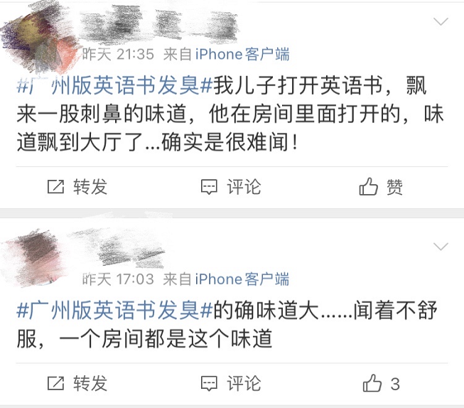 近日廣州有不少家長反映小學三年級、四年級新發的英語課本味道難聞。