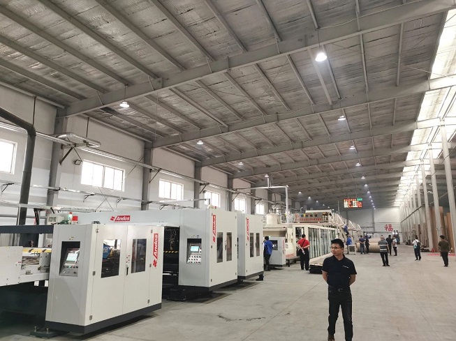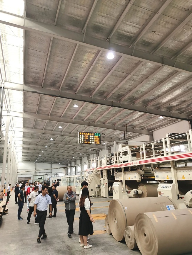 當天上午,由于疫情關(guān)系,與會嘉賓分批次走進宏豐達(天津)紙制品包裝有限公司生產(chǎn)車間,參觀了2.5米江西協(xié)旭濕部+廣東安第斯干部組成的高速智能五層瓦楞紙板生產(chǎn)線,配備的是明佳接紙機、鼎邦溫控、永進物流、大松瓦楞輥、太詮制膠機等配套設(shè)施,以及東莞佳藝2.5米單面瓦楞紙板生產(chǎn)線。