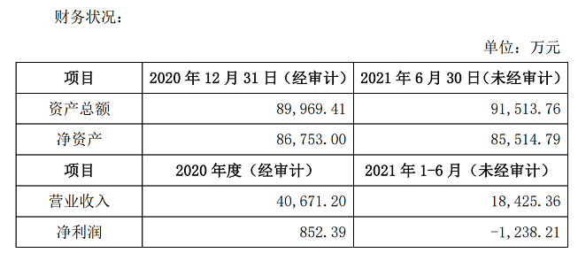 公告顯示,博匯漿業(yè)截至2020年12月31日(經(jīng)審計(jì))資產(chǎn)總額為89969.41萬(wàn)元,2021年6月30日(未經(jīng)審計(jì))資產(chǎn)總額為91513.76萬(wàn)元;2020年度(經(jīng)審計(jì))營(yíng)業(yè)收入為40671.20萬(wàn)元,凈利潤(rùn)為852.39萬(wàn)元;2021年1-6月(未經(jīng)審計(jì))營(yíng)業(yè)收入為18425.36萬(wàn)元,凈利潤(rùn)-1238.21萬(wàn)元。