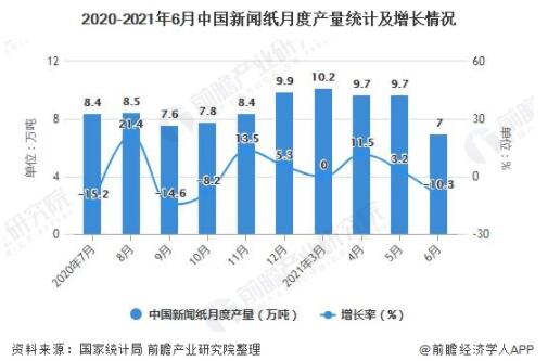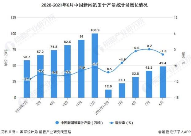 2020-2021年6月中國新聞紙累計產量統計及增長情況