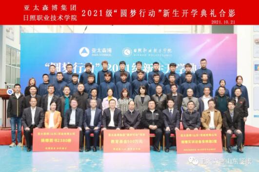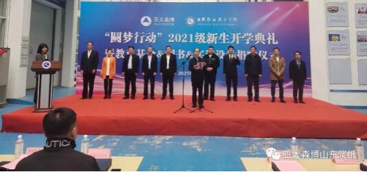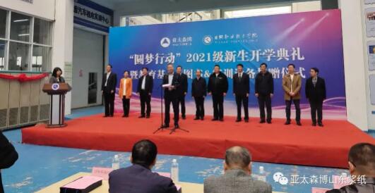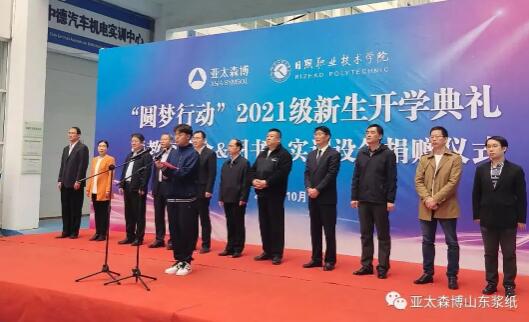 10月21日上午,亞太森博“圓夢行動”2021級新生開學典禮在日照職業技術學院格物樓大廳舉行。齊魯工業大學、日照市委統戰部、日照市教育局、日照職業技術學院、日照經濟技術開發區管委及亞太森博(山東)漿紙有限公司相關領導,23名來自日照、臨沂、濰坊等地的新生以及往屆“圓夢”學生代表齊聚一堂,共同憧憬美好未來。