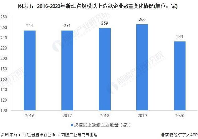 浙江造紙業(yè)產(chǎn)量連續(xù)下滑 浙江省作為我國(guó)造紙大省,一直處于我國(guó)造紙行業(yè)發(fā)展前列,據(jù)浙江省造紙行業(yè)協(xié)會(huì)統(tǒng)計(jì)數(shù)據(jù)顯示,2016-2019年,浙江省規(guī)模以上造紙企業(yè)數(shù)量保持平穩(wěn)增長(zhǎng),2020年,受疫情影響,全省規(guī)模以上造紙企業(yè)數(shù)量有所下滑,截至到2020年底,全省規(guī)模以上造紙企業(yè)數(shù)量為233家。
