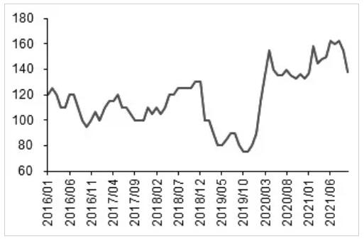△圖為白卡紙產量 雖然下游成品紙消費沒有過多亮點,但2022年的備貨值得關注。2021年年末下游成品紙市場結構大概率為供應端庫存高企而終端和渠道庫存偏低。從價格與庫存的關系來說,顯性庫存較高并不代表價格會繼續(xù)下跌,一旦開始去庫,就會出現(xiàn)成品紙價格的上漲。通常,紙漿期價對下游產品價格變動更為敏感,而產量邊際增減的影響次之。 展望2022年,可以預計 文化紙廠家已經表現(xiàn)出以低開工率穩(wěn)定利潤的心態(tài),從實際消耗來說,對紙漿是利空的。但是,在此過程中,文化紙的價格和利潤或有好轉。從紙漿期貨上市以來的運行規(guī)律看,文化紙價格漲跌對紙漿市場的影響最為明顯。根據(jù)對文化紙需求復蘇節(jié)奏的預判,2022年下半年文化紙市場出現(xiàn)利多的可能性更大。 衛(wèi)生紙價格上漲對紙漿市場只能起錦上添花的作用,很難起主導作用。2021年四季度,衛(wèi)生紙渠道去庫已經完成,這從10月的價格走勢就可以看出。不過,由于嚴重過剩,產業(yè)補庫活動很難持續(xù)。衛(wèi)生紙廠家開工率提升容易出現(xiàn)在價格上漲過程中。文化紙生產小工廠居多,其開工率提升會帶來階段采購,在旺季和跟隨原材料價格上漲的時候能夠一定程度上提振紙漿需求,但這不會左右市場情緒。 白卡紙與白板紙生產的集中度較高,其是氛圍的醞釀者。在外廢已經無法進入國內的情況下,國廢價格持續(xù)偏強,進而抬升包裝紙成本。不過,包裝紙領域使用木漿的比例不大,包裝紙價格變動需要先傳導至其他白紙紙種,再傳導至紙漿上來。 總體來看,各紙種價格在連續(xù)三個季度下滑后,中下游渠道庫存均已不多,產業(yè)庫存主要集中在紙廠環(huán)節(jié)。下游備貨是2022年需求端的一個亮點,且下半年開啟的概率更大。
