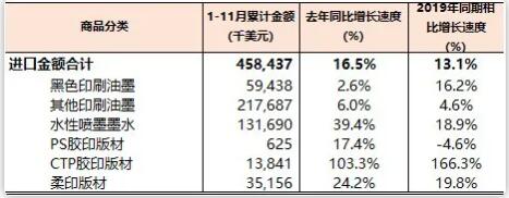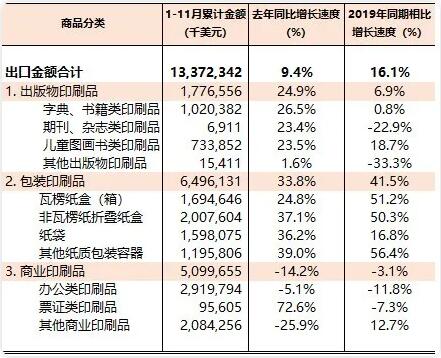 同期,國內印刷器材進出口貿易順差3.73億美元(同比增長89.7%、比2019年同期增長23.7%)。 本期觀察 總結: 2021年1-11月國內印刷產業相關商品進出口呈現已下特點: 印刷品、印刷裝備、印刷器材三大類商品進出口繼續保持增長。與去年同期相比,印刷品進出口增長9.2%、印刷裝備進出口增長38.0%、印刷器材進出口增長31.1%。但與上期數據相比,除印刷裝備進出口增長速度大幅下降(下降5.2個百分點)外、印刷品和印刷器材進出口增長速度保持基本穩定; 印刷品進口增長乏力、出口增長穩定。盡管本期國內印刷品進口與去年同期相比有8.2%的增長,但其進口規模與2019年同期基本持平;而國內印刷品出口同比增長9.4%,與2019年同期相比增長16.1%; 印刷裝備進口、出口同步增長,且進口增長速度大于其出口增長速度。與去年同期相比,國內印刷設備進口增長43.3%、出口增長33.6%;與2019年同期相比,其進口增長27.1%、出口增長18.8%。國內印刷裝備進口和出口規模不僅超越去年同期水平,且比2019年同期也有較大幅度增長; 印刷器材進口、出口持續增長,其出口同比增長速度遠遠大于其進口增長速度。與去年同期相比,國內國內印刷器材進口增長16.5%、出口增長40.9%。與2019年同期相比,其進口增長13.1%、出口增長17.6%。與上期數據相比,印刷器材進口與出口增長速度的差距還在擴大。 與去年同期相比,2021年1-11月國內印刷品、印刷裝備、印刷器材進口、出口增長較快的前五位商品類別如下: 進口:其他出版物印刷品(+245.0%)、凸版印刷機(+139.6%)、CTP膠印版材(+103.3%)、其他紙質包裝容器(+73.9%)、印刷輔機和零件(+67.0%); 出口:印刷輔機和零件(+81.0%)、票證類印刷品(+72.6%)、CTP膠印版材(+46.6%)、凸版印刷機(+44.7%)、絲印機(+41.6%)。 同期,國內印刷品、印刷裝備、印刷器材進出口相對萎縮的商品類別如下: 進口:柔版印刷機(-50.1%)、期刊雜志類印刷品(-41.7%)、凹版印刷機(-39.7%)、包裝印后設備(-14.6%)、兒童圖畫書類印刷品(-11.6%); 出口:其他商業類印刷品(-25.9%)、辦公類印刷品(-5.1%)。 另外,本期國內凹版印刷機和包裝印后設備進口增長速度(與去年同期相比)由正轉負。 與2019年同期相比,2021年1-11月國內印刷品、印刷裝備、印刷器材進口、出口增長較快的前五位商品類別如下: 進口:CTP膠印版材(+166.3%)、其他出版物印刷品(+161.0%)、凸版印刷機(+74.4%)、印刷輔機和零件(+70.5%)、紙袋(+46.0%)其他紙質包裝容器(+38.0%); 出口:其他紙質包裝容器(+56.4%)、印刷輔機和零件(+55.6%)、水性噴墨墨水(+55.2%)、瓦楞紙盒(箱)(+51.2%)、非瓦楞紙折疊紙盒(+50.3%)、包裝印后設備(+47.2%)。 同期,國內印刷品、印刷裝備、印刷器材進出口相對萎縮的商品類別如下: 進口:期刊雜志類印刷品(-38.9%)、絲印機(-37.1%)、柔版印刷機(-23.9%)、數字印刷機(-23.7%)、兒童圖畫書類印刷品(-10.2%); 出口:其他出版物印刷品(-33.3%)、期刊雜志類印刷品(-22.9%)、計算機直接制版機(-21.2%)、辦公類印刷品(-11.8%)、PS膠印版材(-11.3%)。 對比以往幾期數據發現,國內印刷品、印刷裝備、印刷器材三大類商品中,涉及進口、出口變動幅度較大的子項商品保持相對穩定。