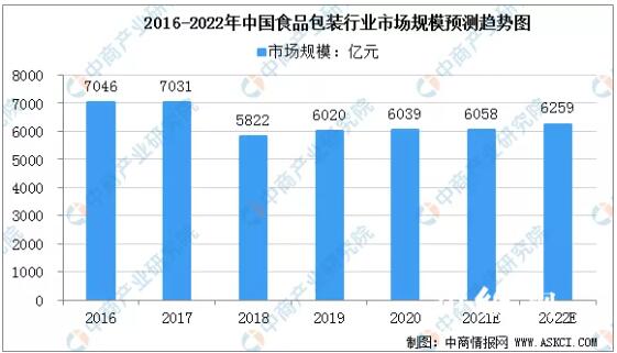 隨著中國經濟的迅速發展,尤其是生活節奏的加快促使著人們改變了傳統的生活方式,人們越來越不愿在廚房里多花時間,新一代的消費群體在不斷壯大,使方便食品越來越保持良好的增長勢頭。而近年來國外眾多企業對方便食品的投資,也使中國方便食品行業發展迎來了新的機遇。 1、食品包裝行業市場規模 食品包裝是包裝工業的大戶,占整個包裝業市場份額的60%左右。由于對環境保護施加了更為嚴格的法規要求,導致近年來中國包裝行業架構變化以及包裝企業數量和包裝產品銷量嚴重下降,新冠疫情得到有效控制后,各種包裝材料需求持續增加,2020年食品包裝行業市場規模在6039億元左右,中商產業研究院預計2022年中國食品包裝行業市場規模將回升至6259億元。
