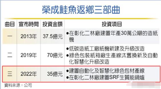 順帶一提,榮成紙業(yè)早前還宣布,將繼續(xù)響應(yīng)政府政策,擴大回臺投資,未來三年將投下35億元(新臺幣),建置自動化及智慧化綠色包裝產(chǎn)線、以及SRF生質(zhì)能鍋爐,以呼應(yīng)環(huán)保永續(xù)的產(chǎn)業(yè)大趨勢。