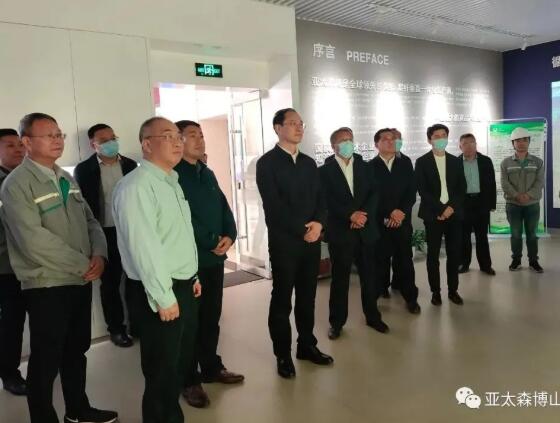 在公司展廳,公司董事長、總經理陳小榮介紹了公司生產運營、循環經濟、社會責任、產業鏈延伸等情況,李仲強一行對公司在各個領域所取得的成績及貢獻給予充分肯定,表示亞太森博環境保護意識到位、管理規范,用能高效,起到了很好的引領作用。