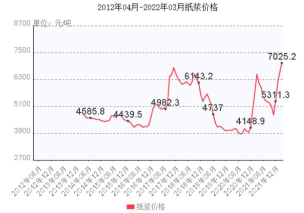 晨鳴紙業(yè)、太陽(yáng)紙業(yè)、博匯紙業(yè)等在內(nèi)的十余家紙業(yè)龍頭,近期紛紛發(fā)布漲價(jià)函。繼灰底白、特種紙、生活用紙之后,文化紙也迎來(lái)200元/噸的價(jià)格上調(diào),中國(guó)紙業(yè)“漲聲一片”。 自2021年下半年以來(lái),紙漿價(jià)格、海運(yùn)費(fèi)用、能源成本一路高走,地緣政治、疫情形勢(shì)變幻無(wú)常,供給需求兩端受壓的中國(guó)造紙業(yè),不得不在一輪接一輪的漲價(jià)中,尋求自救。 這是一次產(chǎn)業(yè)的重新整理優(yōu)化,而一些龍頭企業(yè),已經(jīng)看到了復(fù)蘇的曙光。 不得不漲 從衛(wèi)生紙到復(fù)印紙,從牛皮紙到瓦楞紙,2022年以來(lái),造紙業(yè)漲價(jià)函一封接著一封。 按主要原材料來(lái)源,紙張可分為廢紙系和漿紙系兩大類,一類用廢紙制漿,一類用木材制漿。 先看木漿。 從2021年下半年開始,在疫情、供應(yīng)鏈問(wèn)題、國(guó)際物流、政策面消息等一系列要素相互作用下,木漿價(jià)格一路狂漲。 2021年年內(nèi),針葉木漿價(jià)格上漲了10%左右,闊葉木漿價(jià)格漲幅則接近20%。