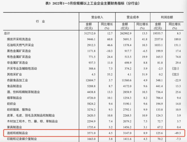 ▲紙漿期末值價(jià)格走勢(shì) 原材料價(jià)格走高令下游造紙企業(yè)漲價(jià)函頻出,反過(guò)來(lái)對(duì)紙漿木漿市場(chǎng)進(jìn)行了進(jìn)一步的支撐。 不跟漲的市場(chǎng) 通常來(lái)講,面對(duì)原材料成本上漲,企業(yè)可以通過(guò)提升終端價(jià)格,將部分壓力轉(zhuǎn)移給消費(fèi)者。可是,盡管紙業(yè)的漲價(jià)一波接著一波,造紙企業(yè)卻很快發(fā)現(xiàn),疫情下的消費(fèi)低迷,政策的連鎖反應(yīng),連同行業(yè)競(jìng)爭(zhēng)的日趨激烈,讓整個(gè)中國(guó)造紙業(yè)不得不面臨需求和供給的雙重困境。 一個(gè)明顯的例子就是,2021年年中,教育行業(yè)“雙減”政策正式施行,教輔練習(xí)冊(cè)需求銳減,讓與之對(duì)應(yīng)的文化紙品銅版紙、雙膠紙銷路不暢。 同時(shí),2021年二季度開始,進(jìn)口成品紙大量涌入沖擊國(guó)內(nèi)市場(chǎng),文化紙價(jià)格一度大幅下降,落差一度達(dá)到2000元/噸。 需求不足,供給端也出現(xiàn)了大麻煩。 白卡紙、文化紙等主要木漿紙直面上游的成本壓力。 作為我國(guó)紙漿第二大來(lái)源國(guó)的芬蘭,從去年年底就爆發(fā)了工人罷工事件,今年以來(lái)更是將罷工時(shí)間七次延長(zhǎng),直接影響到木漿生產(chǎn)供應(yīng)。而以往,我國(guó)有接近兩成的木漿供應(yīng)均依賴于芬蘭。 另一個(gè)紙漿進(jìn)口來(lái)源國(guó)則是俄羅斯,2021年,俄羅斯出口了約600萬(wàn)噸紙漿和紙制品,其中40%流向了中國(guó)。受到俄烏戰(zhàn)爭(zhēng)的影響,俄羅斯伊利姆集團(tuán)暫停對(duì)中國(guó)的供應(yīng)漂白針葉漿供應(yīng),恢復(fù)時(shí)間遙遙無(wú)期,這也就意味著我國(guó)生產(chǎn)企業(yè)另有12%左右的木漿來(lái)源被切斷。 其他重要的國(guó)際供應(yīng)商也沒(méi)帶來(lái)好消息。美國(guó)West Rock宣布將在6月6日前永久關(guān)閉巴拿馬城的工廠。洪水影響下,加拿大西弗雷澤木材有限公司也宣布將永久性減少其位于阿爾伯塔省Hinton紙漿廠的產(chǎn)能。 雙膠紙、雙銅紙的開工率僅能維持在60%-65%。 國(guó)內(nèi)漿紙一度出現(xiàn)了價(jià)格倒掛,紙張?zhí)醿r(jià)成為必須選項(xiàng),但供需關(guān)系不平衡導(dǎo)致成本壓力無(wú)法順暢傳導(dǎo)。 終端不買賬,成品紙?zhí)醿r(jià)幅度卻十分有限。 造紙業(yè)自救 根據(jù)國(guó)家統(tǒng)計(jì)局?jǐn)?shù)據(jù),今年一季度,造紙和紙制品業(yè)整體營(yíng)收實(shí)現(xiàn)3571億元,同比增長(zhǎng)4.5%,但利潤(rùn)總額僅為125.6億元,同比下降49.3%。